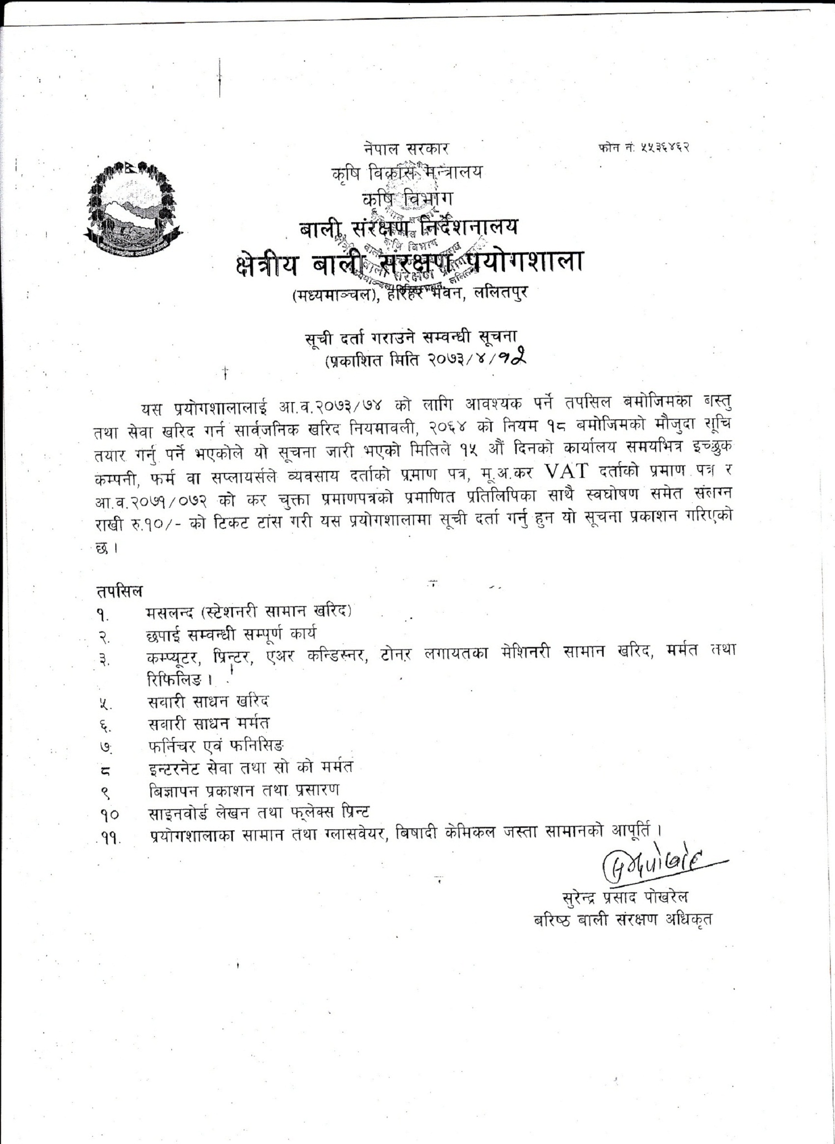 Notice about registration of Standing List for Fiscal Year 2074/075