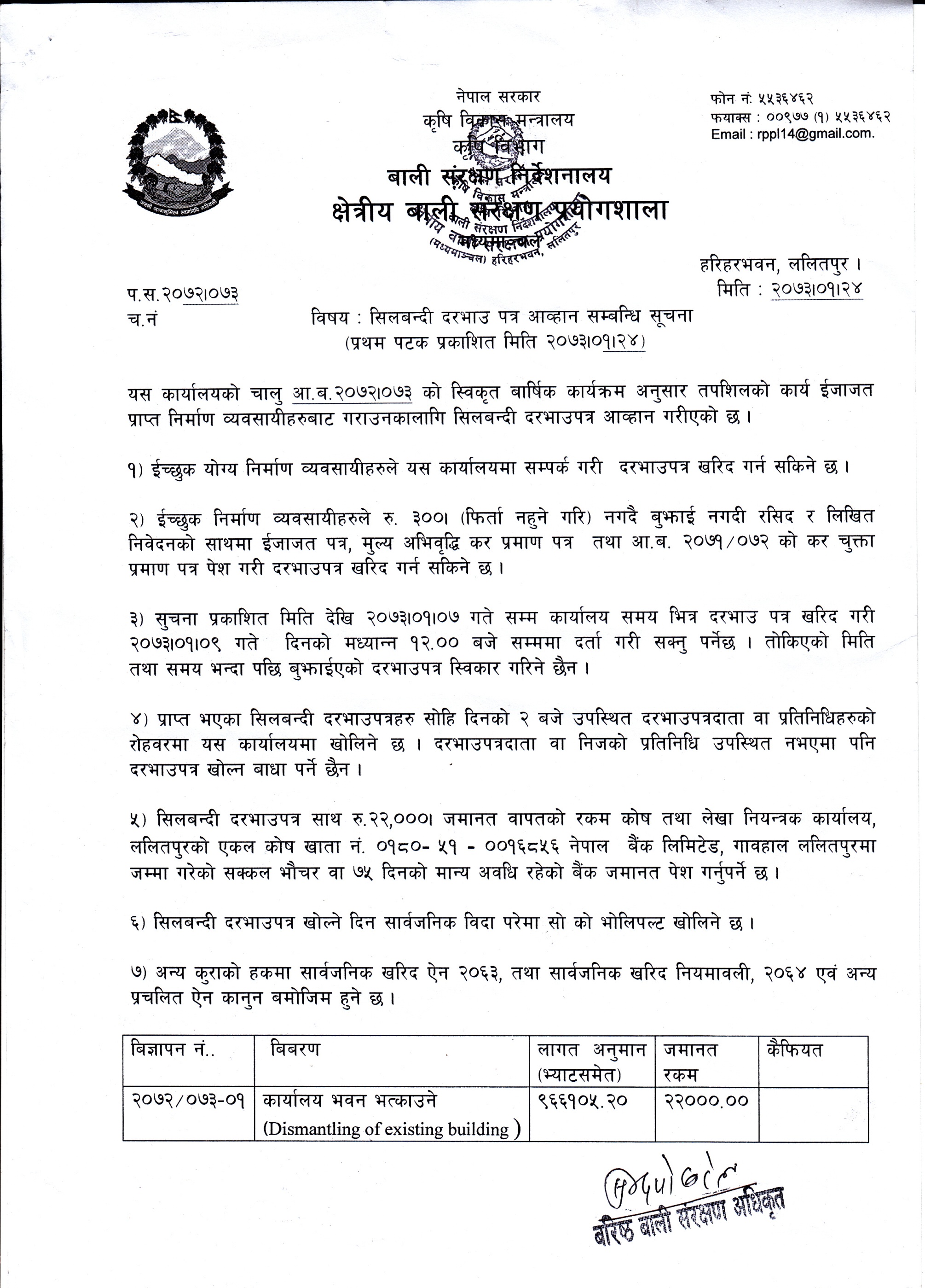Notice about registration of Standing List for Fiscal Year 2074/075